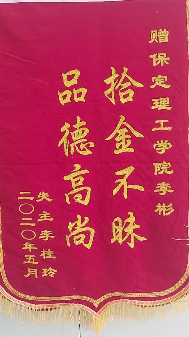 bat365李彬同学拾金不昧受表扬---归还失主现金壹万元 拒收金钱回报